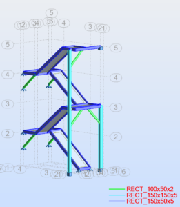 – La modélisation de l’escalier et de la passerelle composés de tubes métalliques